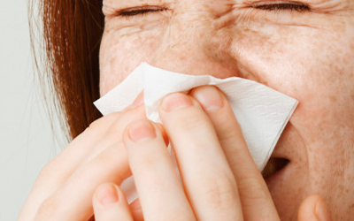 A inflamação crônica da mucosa nasal, ocorre em resposta a exposição a alérgenos, causando irritação tecidual, corrimento, espirros constantes e obstrução nasal.